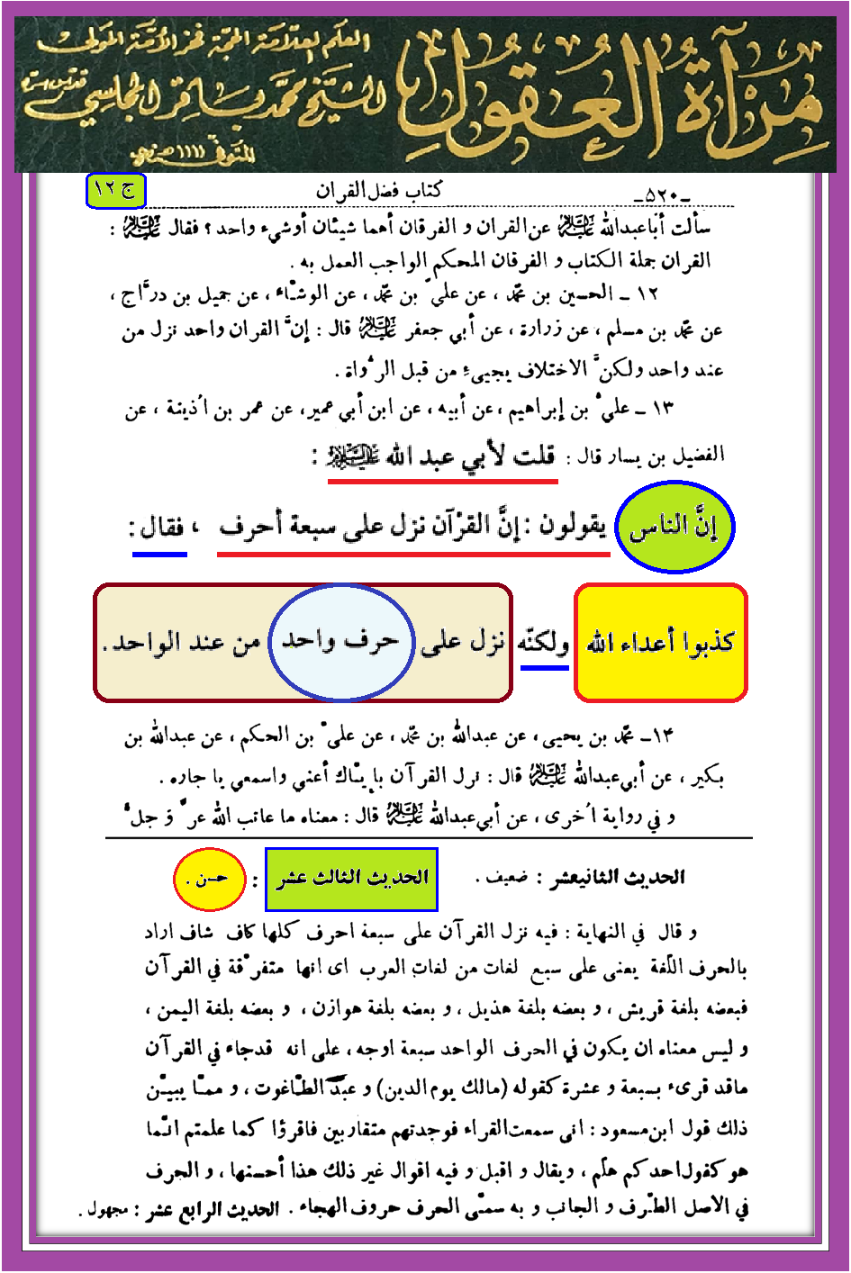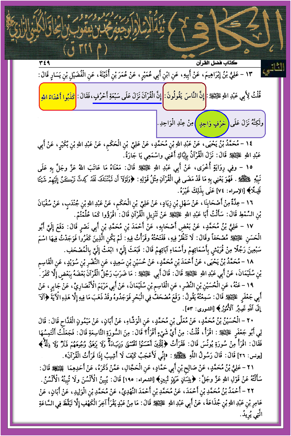 الأحرف السبعة، رد الشبهات، شبهات حول القرآن الكريمالقرآن نزل على حرف واحد من عند الواحد حجم الخط:-+= يا الله بسم الله الرحمن الرحيم اللهم صل على محمد وآل محمد وارض عنا بهم واحشرنا معهم يا كريم يا رب القرآن نزل على حرف واحد وليس سبعة أحرف سلام على إل ياسين أو آل ياسين – هل من يقرأ بهذه القراءة يكون محرفا لكتاب الله من لا يقول بالحد لله تعالى ( والعياذ بالله ) فهو جاحد بالقرآن الكريم