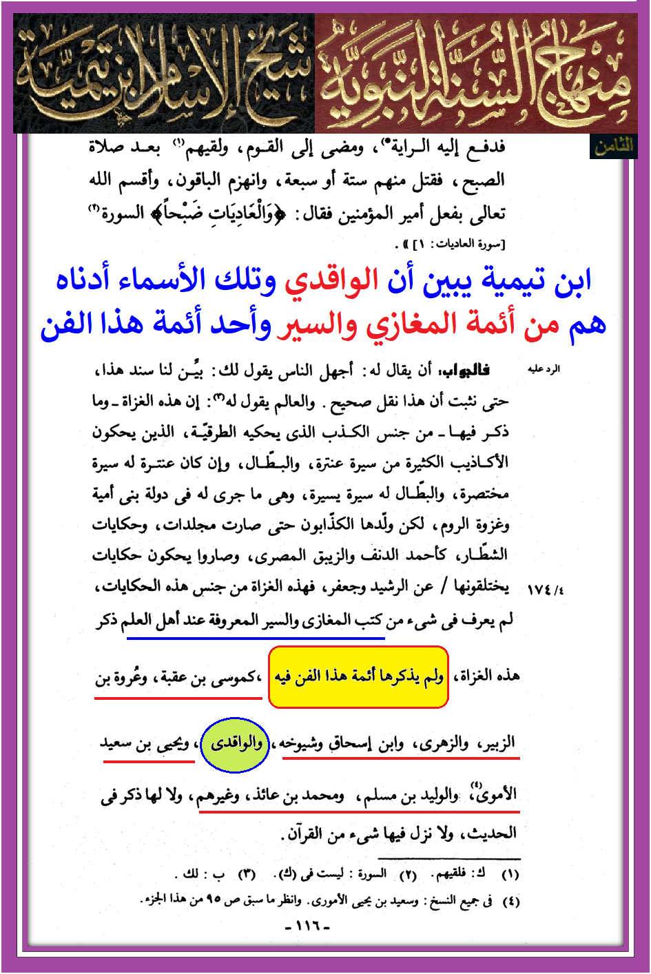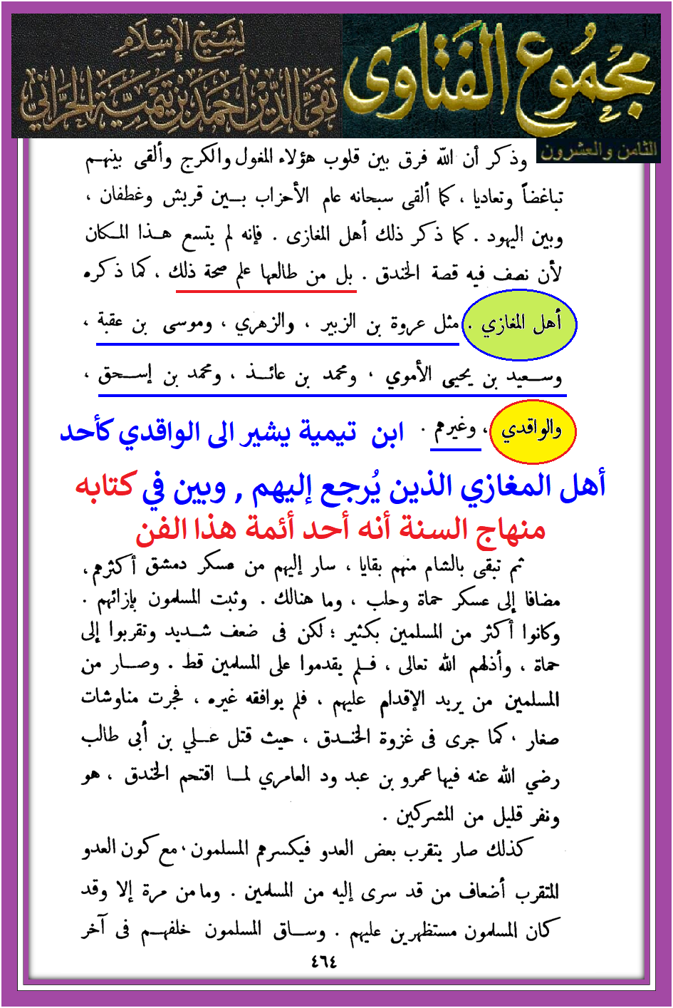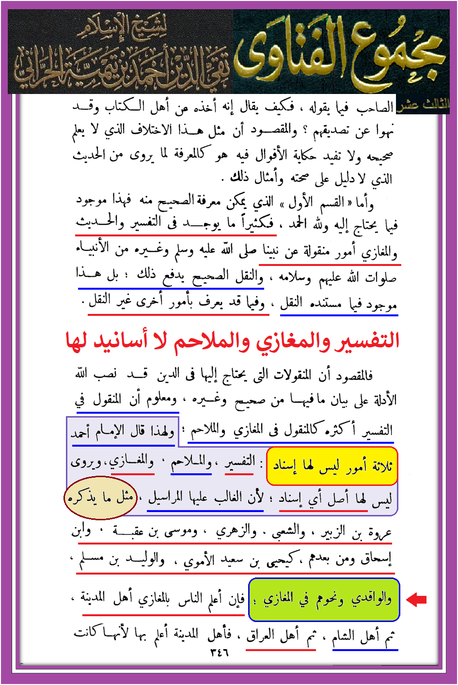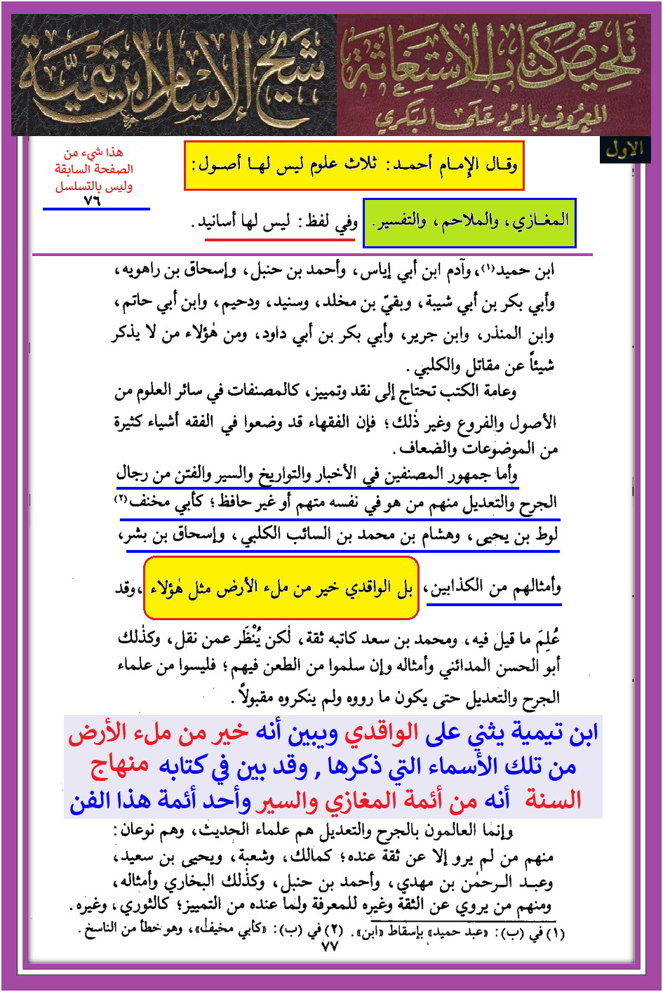ثلاث علوم أو أمور لا أصل لها – شيء عن الواقدي وثناء ابن تيمية عليه