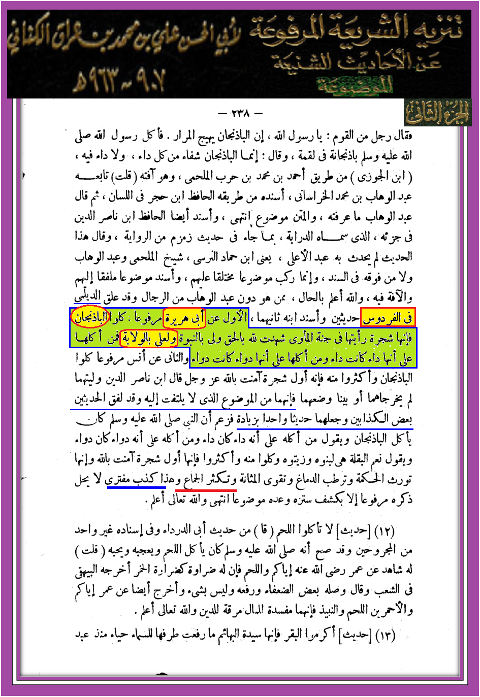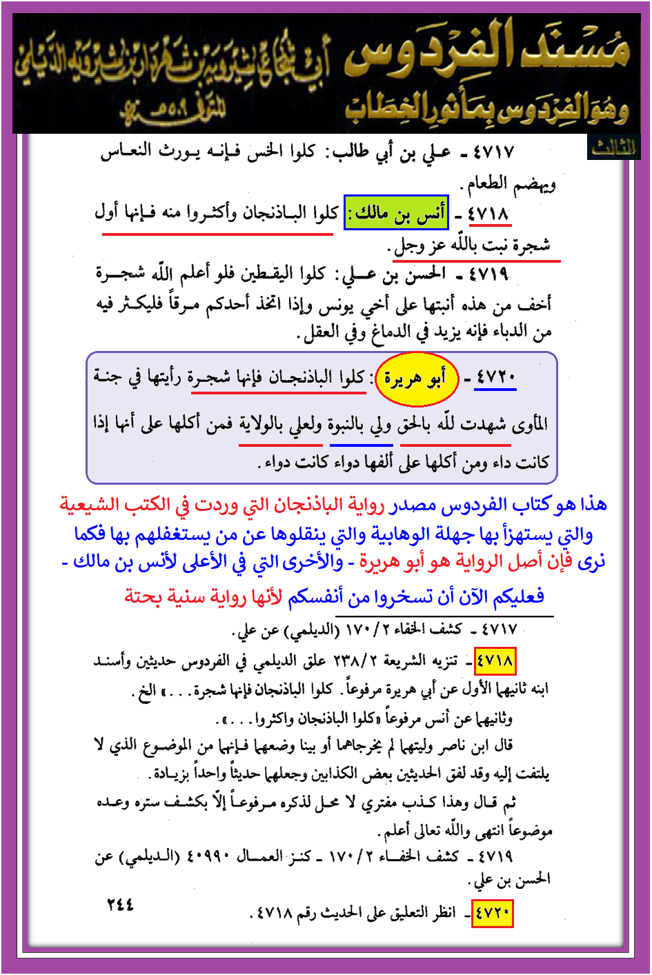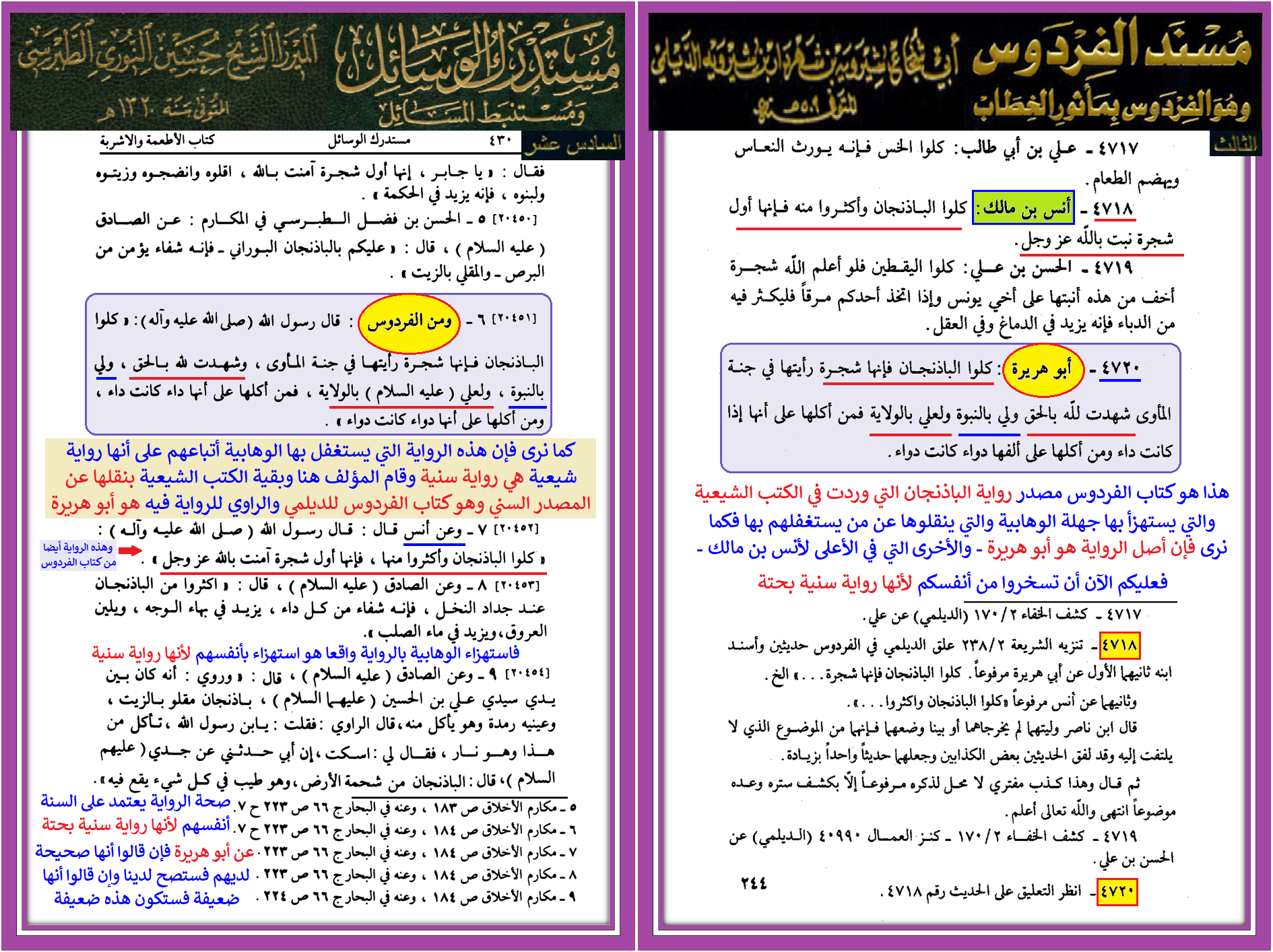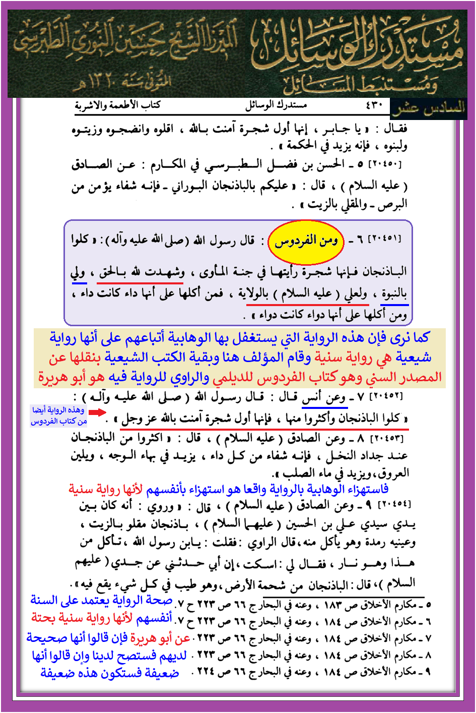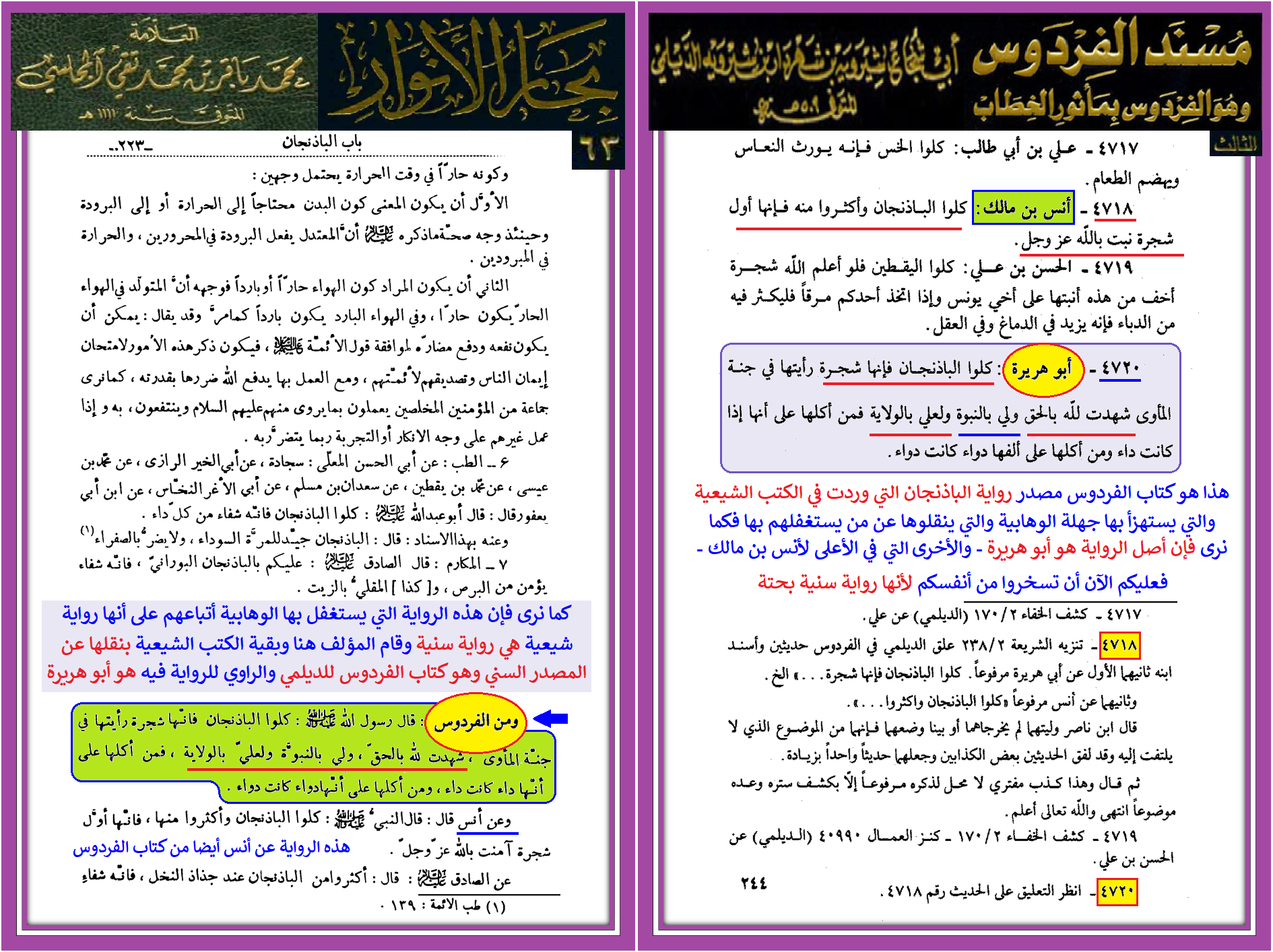 رد شبهة الباذنجان – الرواية أصلها سني ونقلتها كتب الشيعة