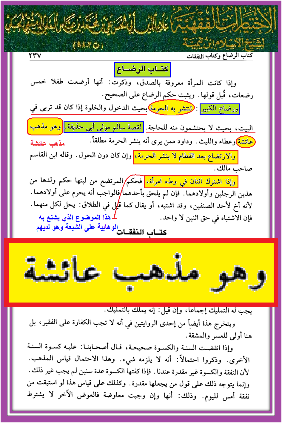 رضاعة الكبير مذهب عائشة – حسب ابن تيمية