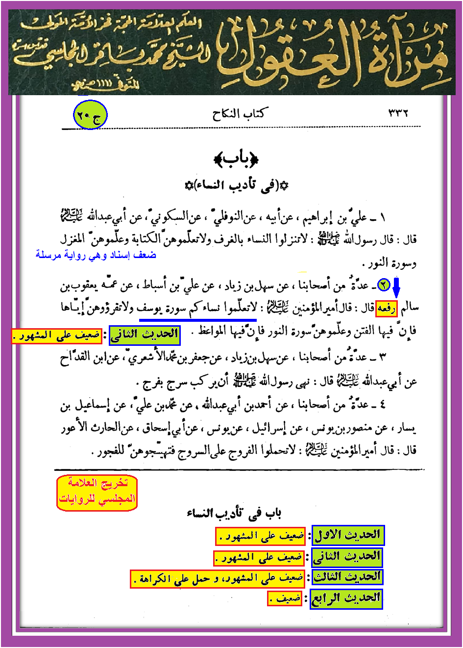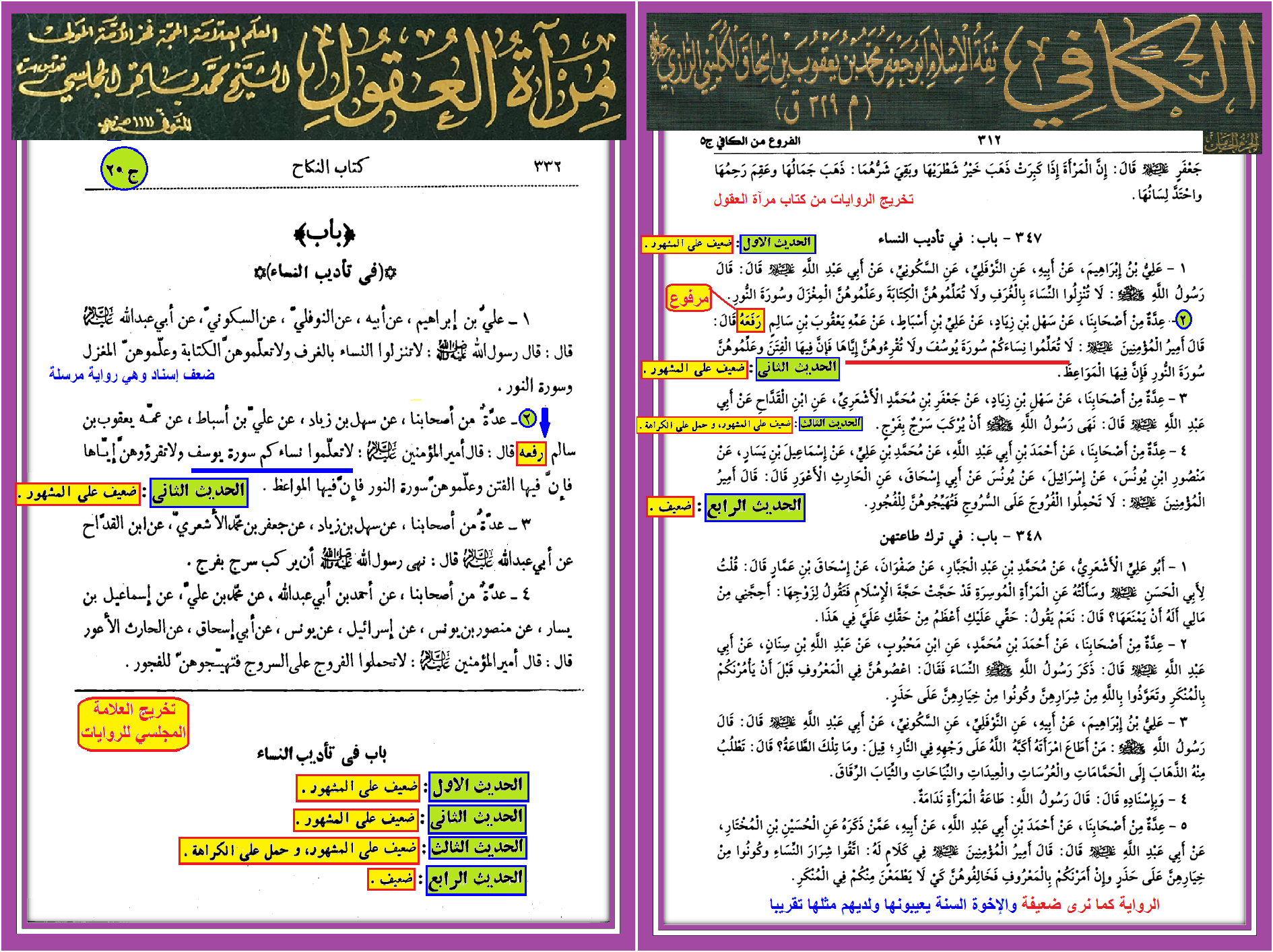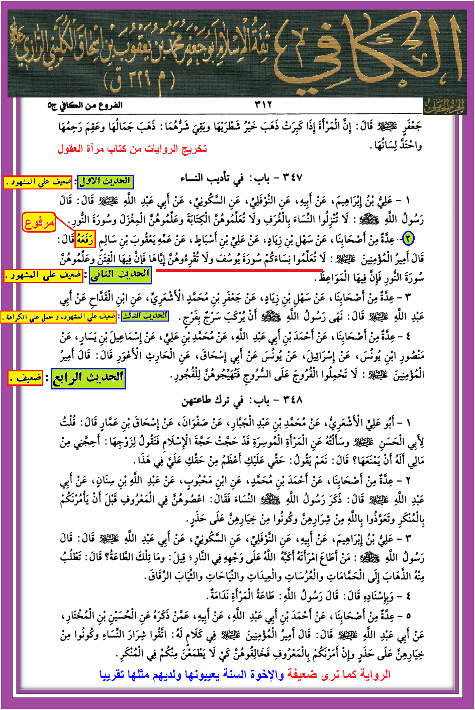 هذه أولا الرواية التي يلقلق بها القوم من كتاب الكافي والحكم عليها وبيان ضعفها من كتاب مرآة العقول