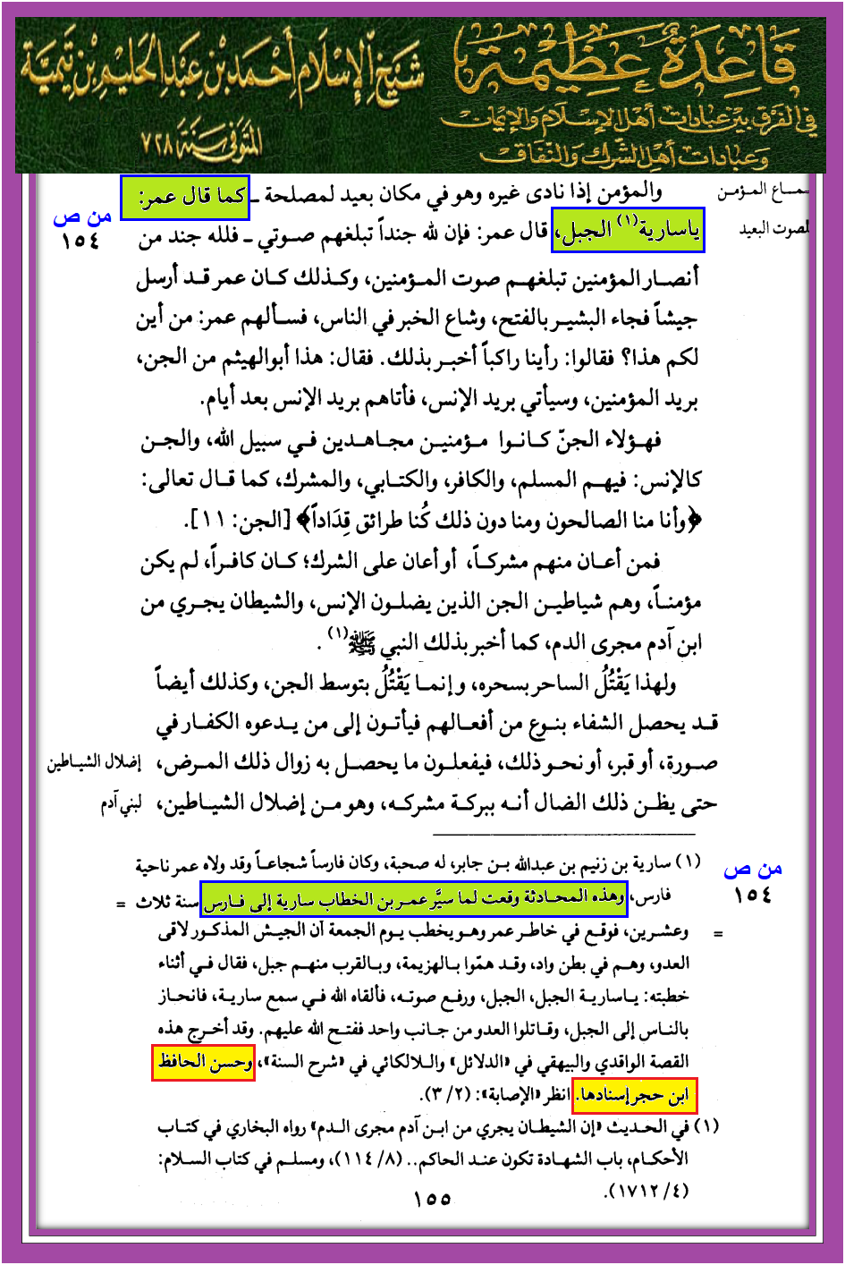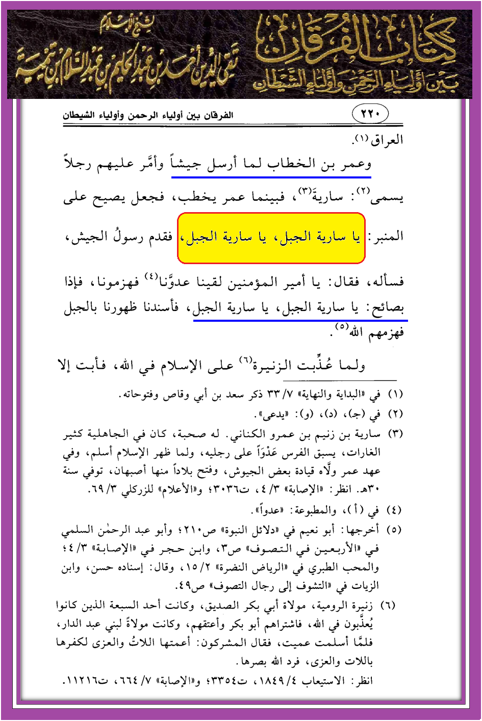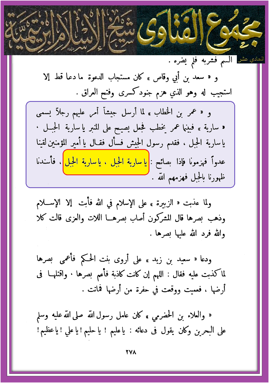 يا سارية الجبل – مصادر من ابن تيمية فقط