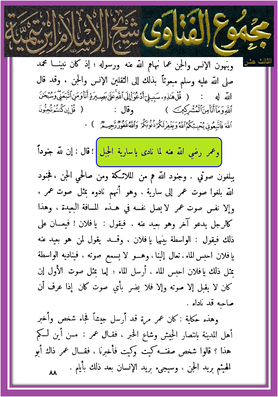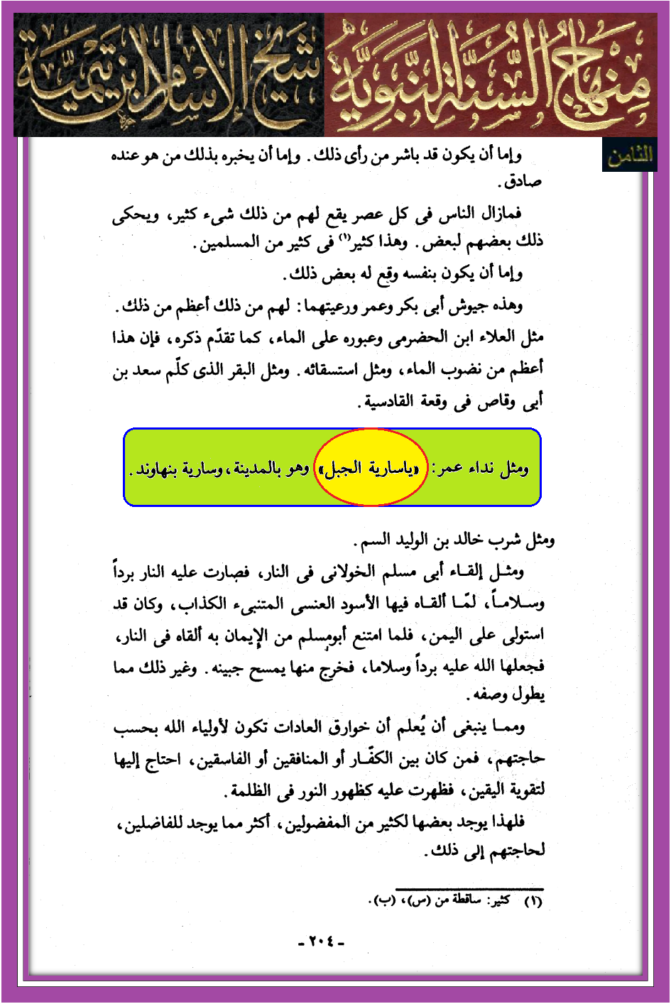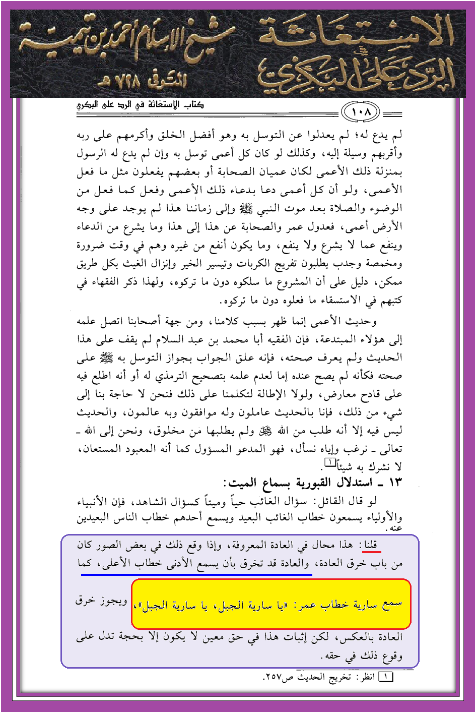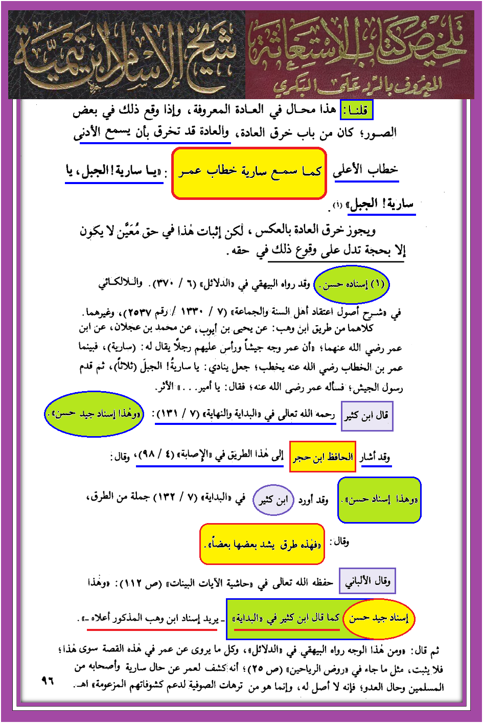 يا سارية الجبل – مصادر من ابن تيمية فقط