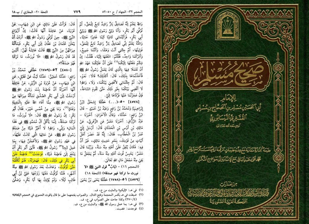 صحيح مسلم بَاب قَوْلِ النَّبِيِّ صَلَّى اللَّهُ عَلَيْهِ وَسَلَّمَ لَا نُورَثُ مَا تَرَكْنَا فَهُوَ صَدَقَةٌ