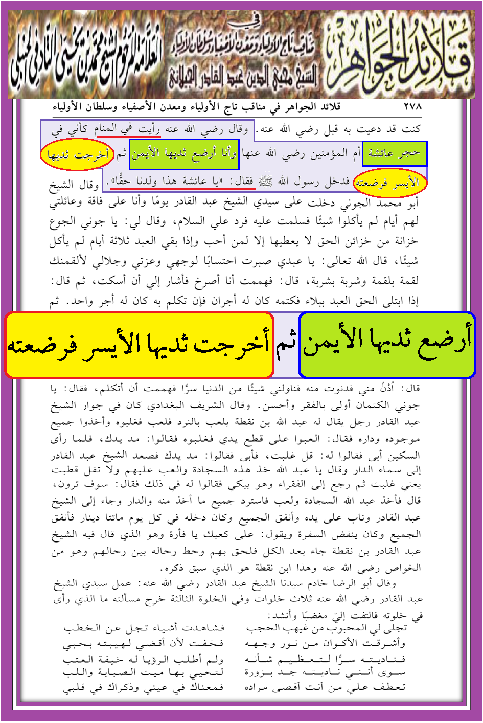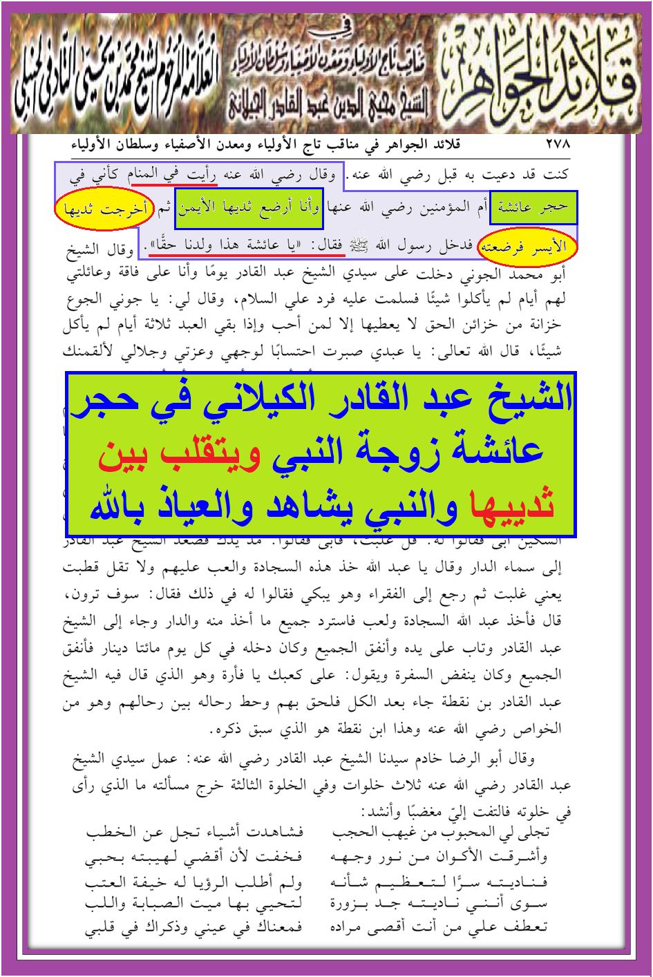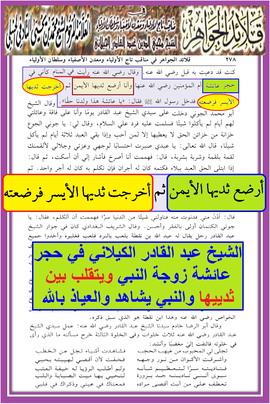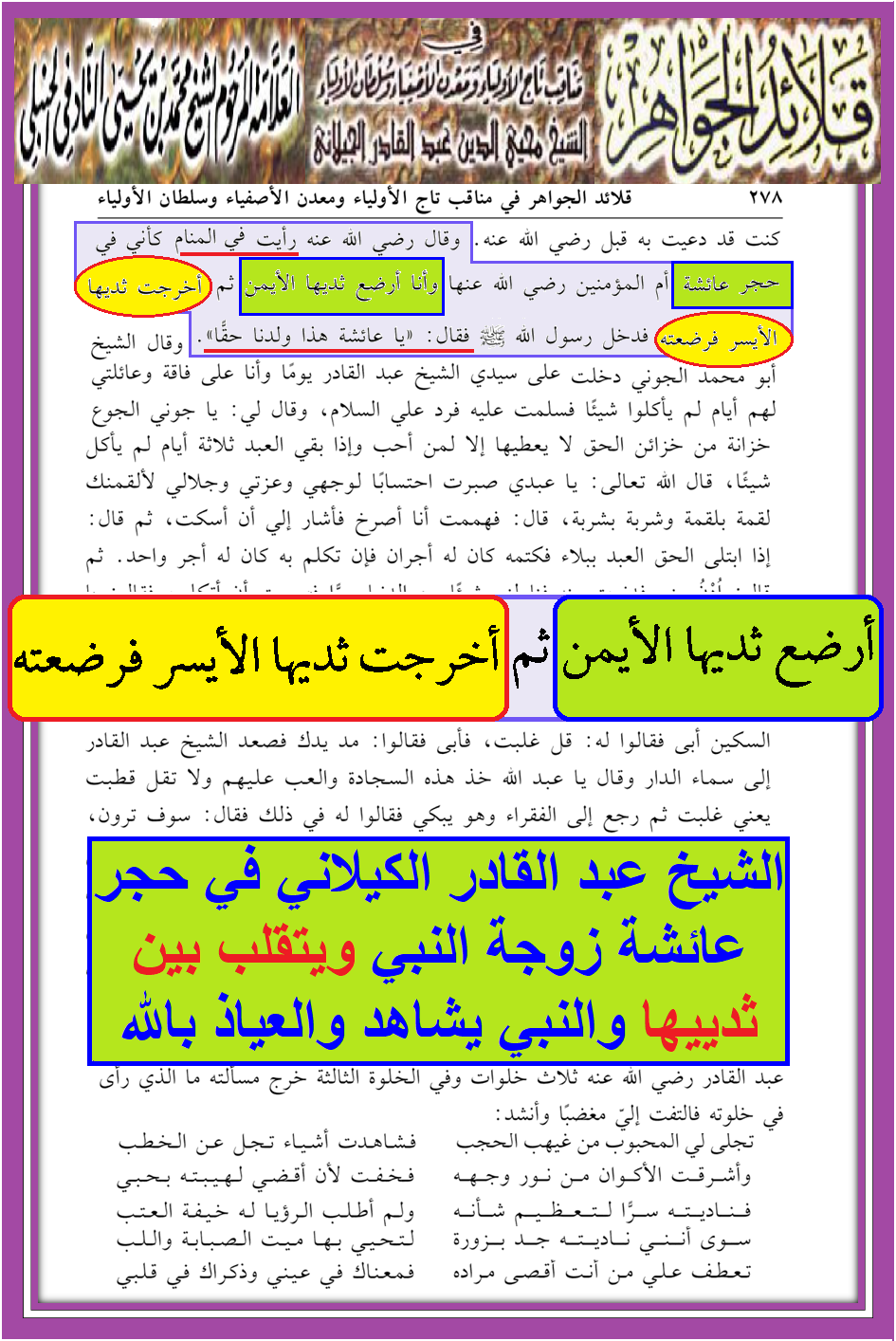 الكيلاني يتقلب بين الأثداء ويرضع بمحضر النبي صلى الله عليه وآله وسلم رؤية النبي حق