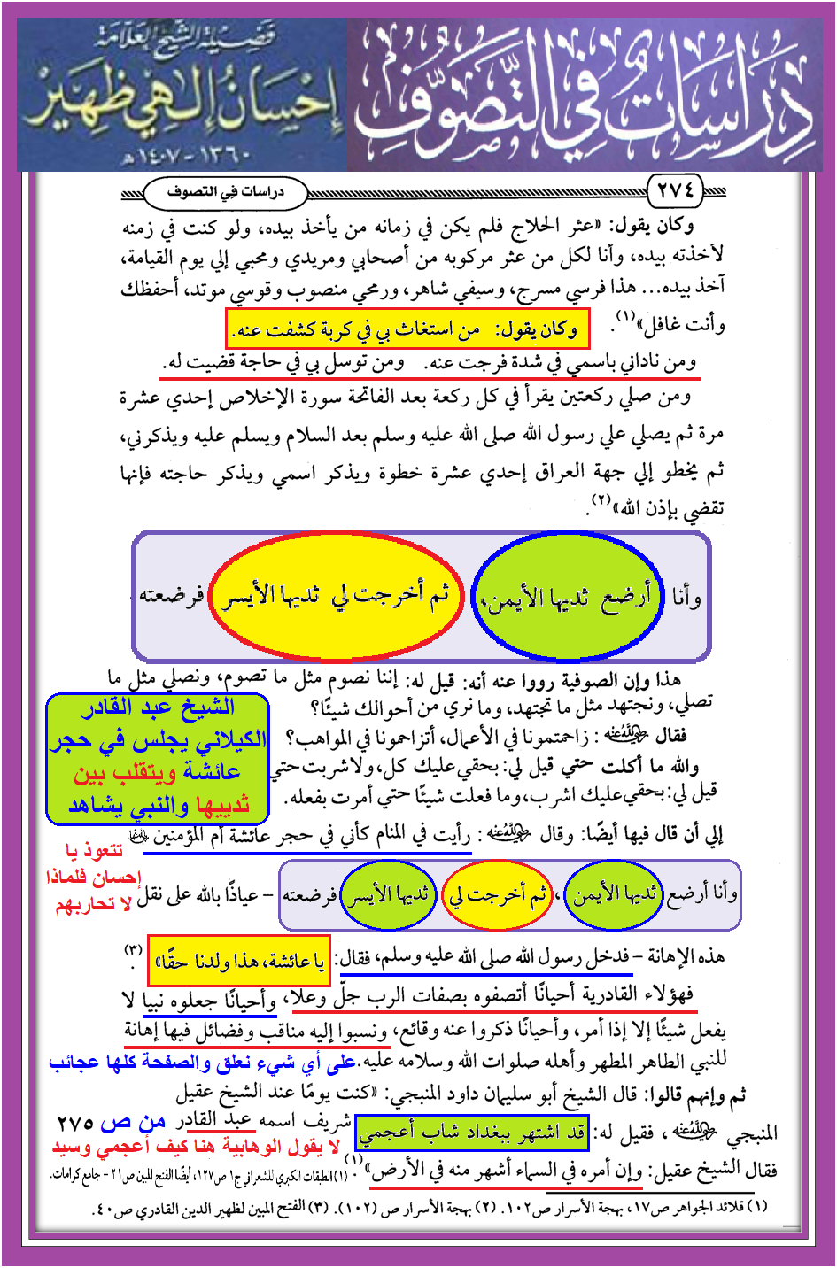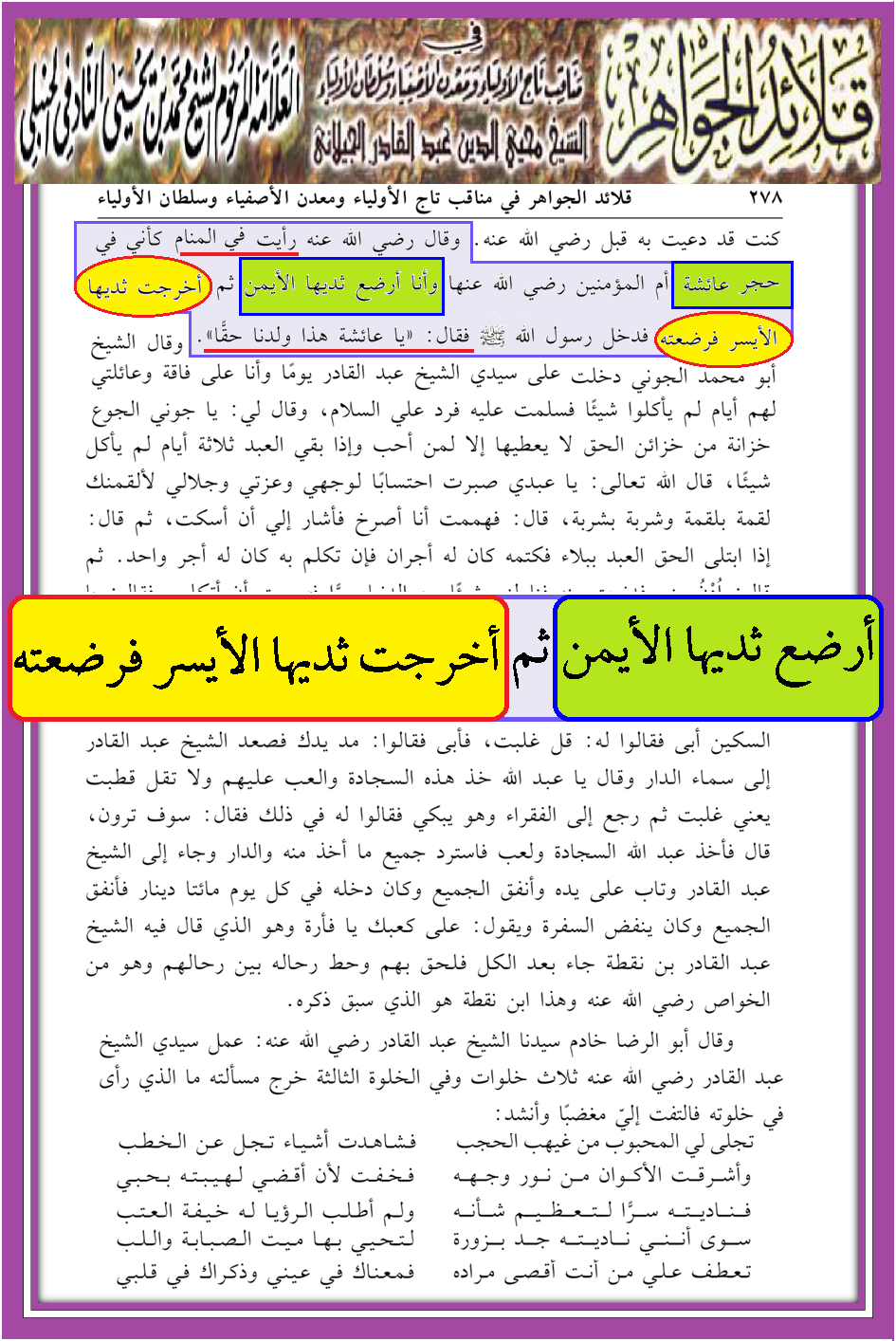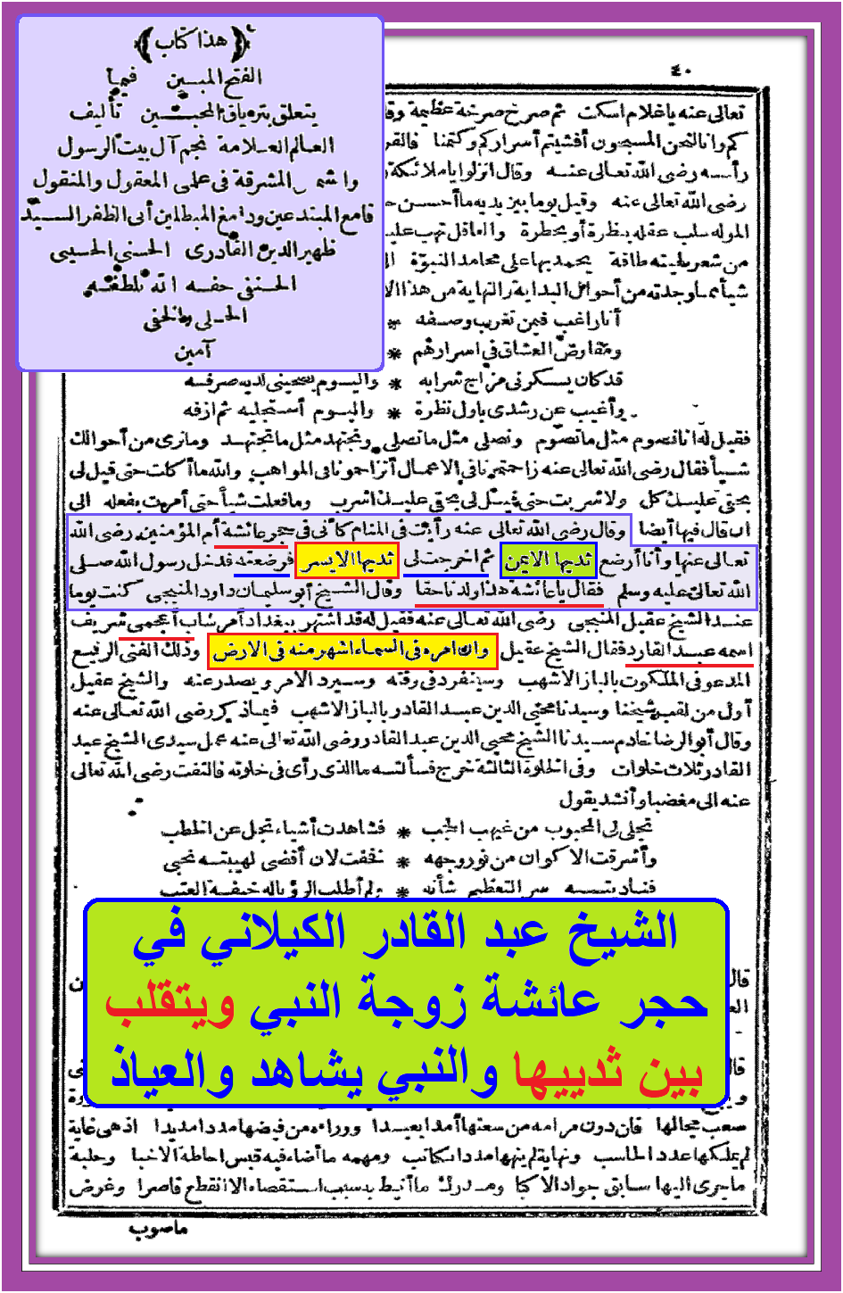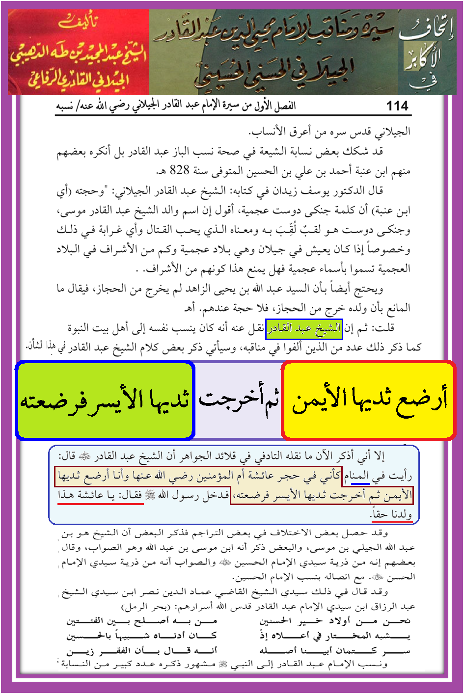 الكيلاني يتقلب بين الأثداء ويرضع بمحضر النبي صلى الله عليه وآله وسلم رؤية النبي حق