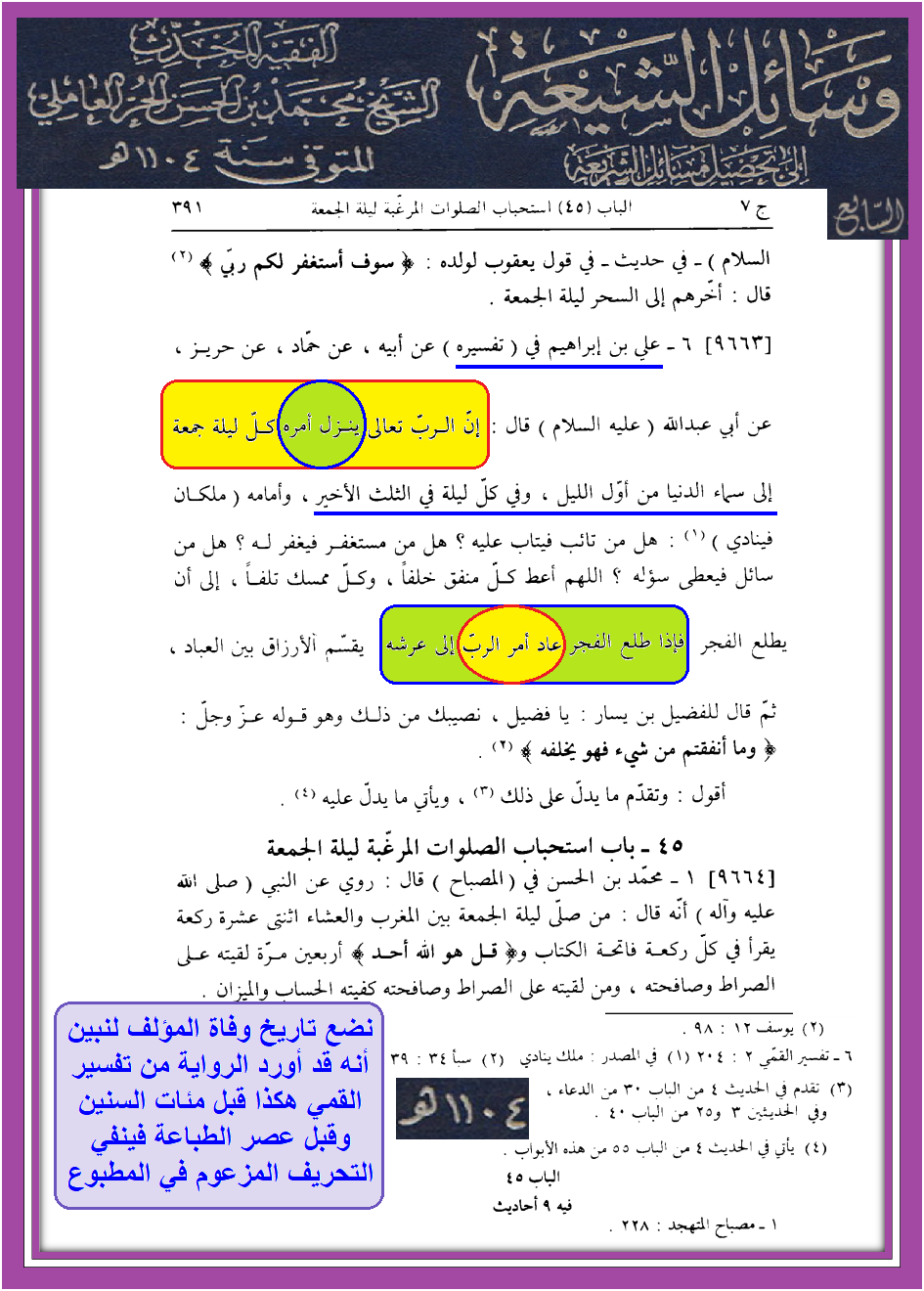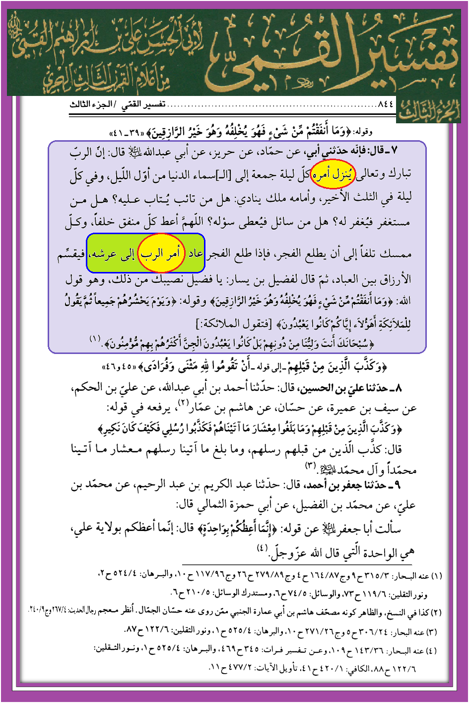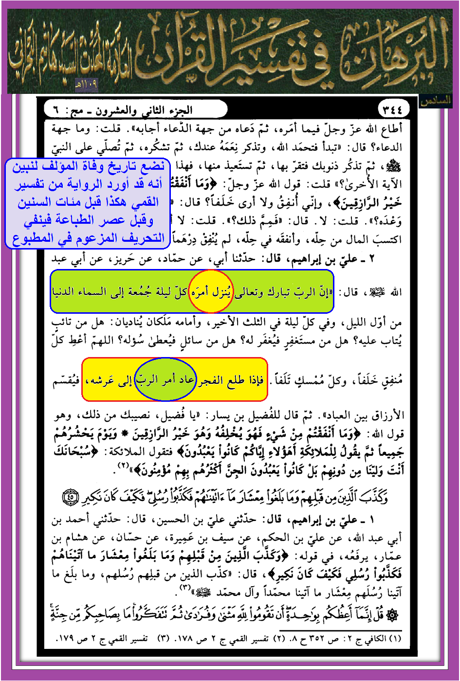رد شبهة نزول الله تعالى التي في بحار الأنوار التي ينقلها من تفسير القمي
