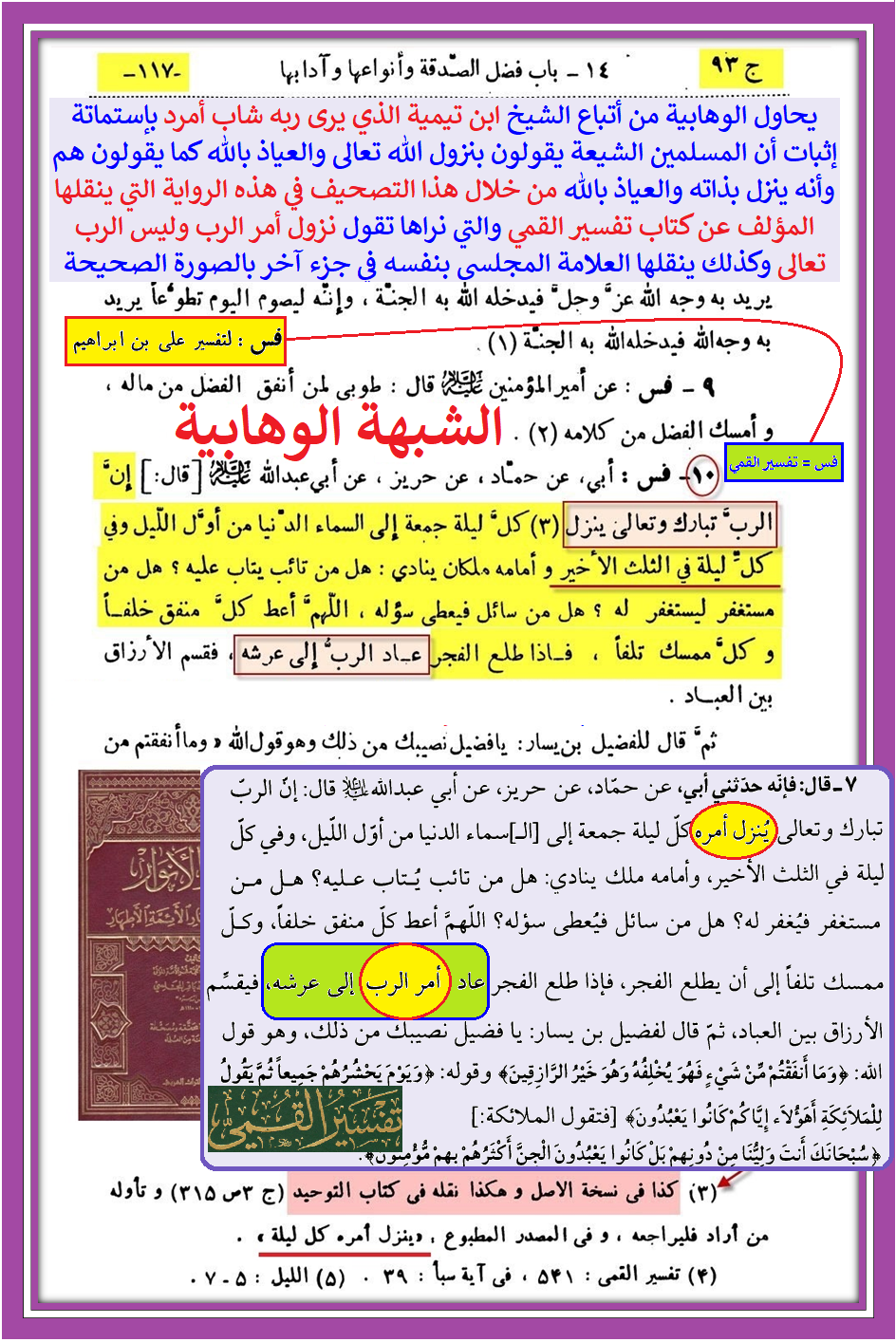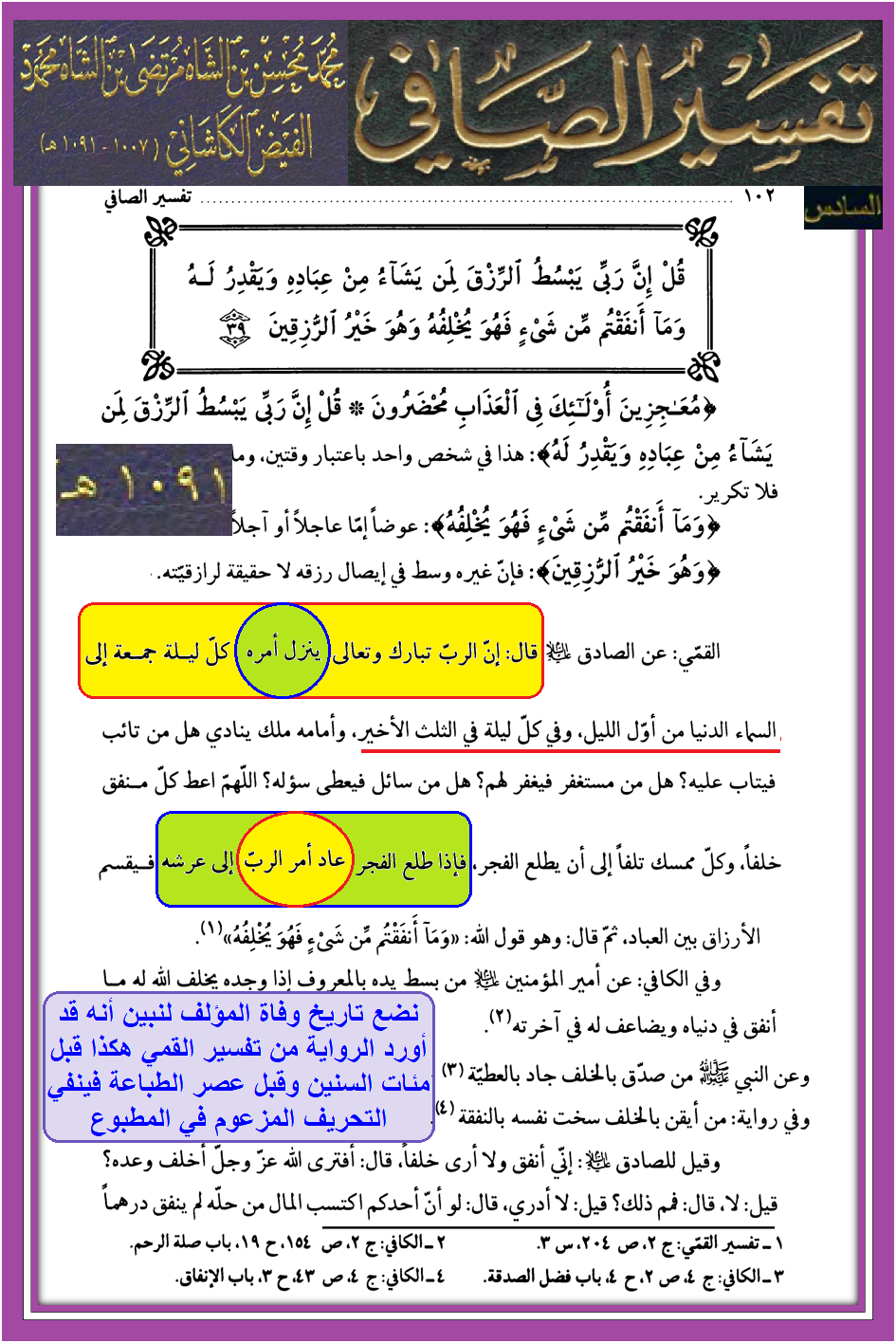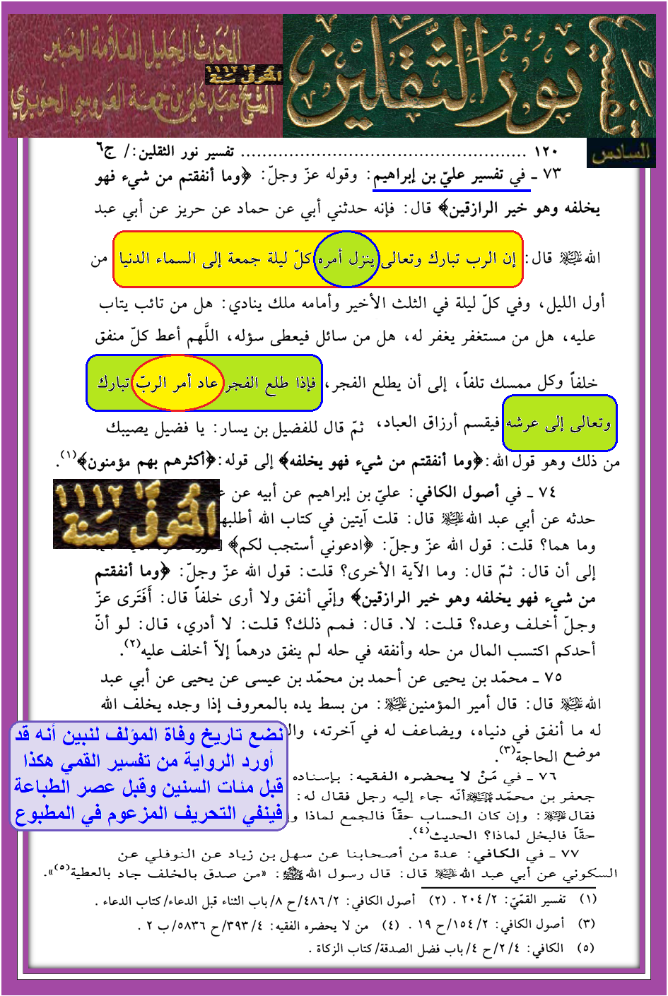 رد شبهة نزول الله تعالى التي في بحار الأنوار التي ينقلها من تفسير القمي