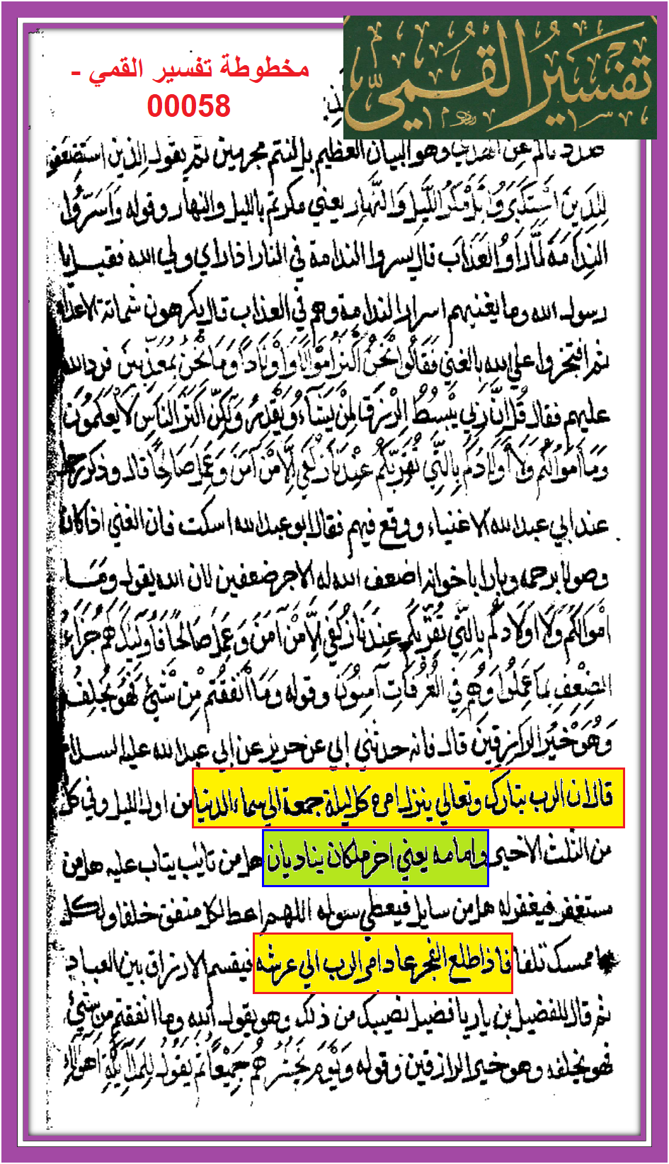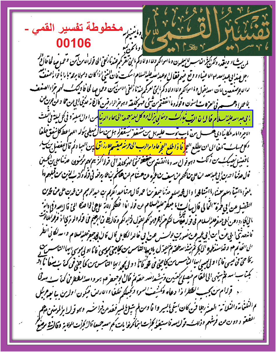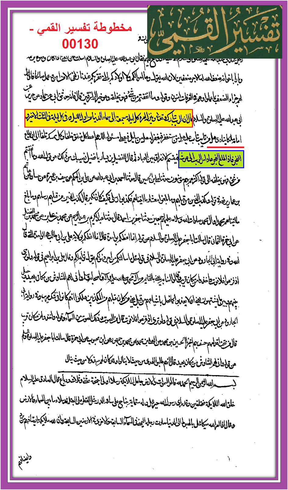 ونضيف أيضا عدة نسخ لمخطوطات كتاب تفسير القمي وفيها اللفظ الذي بيناه بل وقاله العلامة المجلسي في كتابه بحار الأنوار أيضا